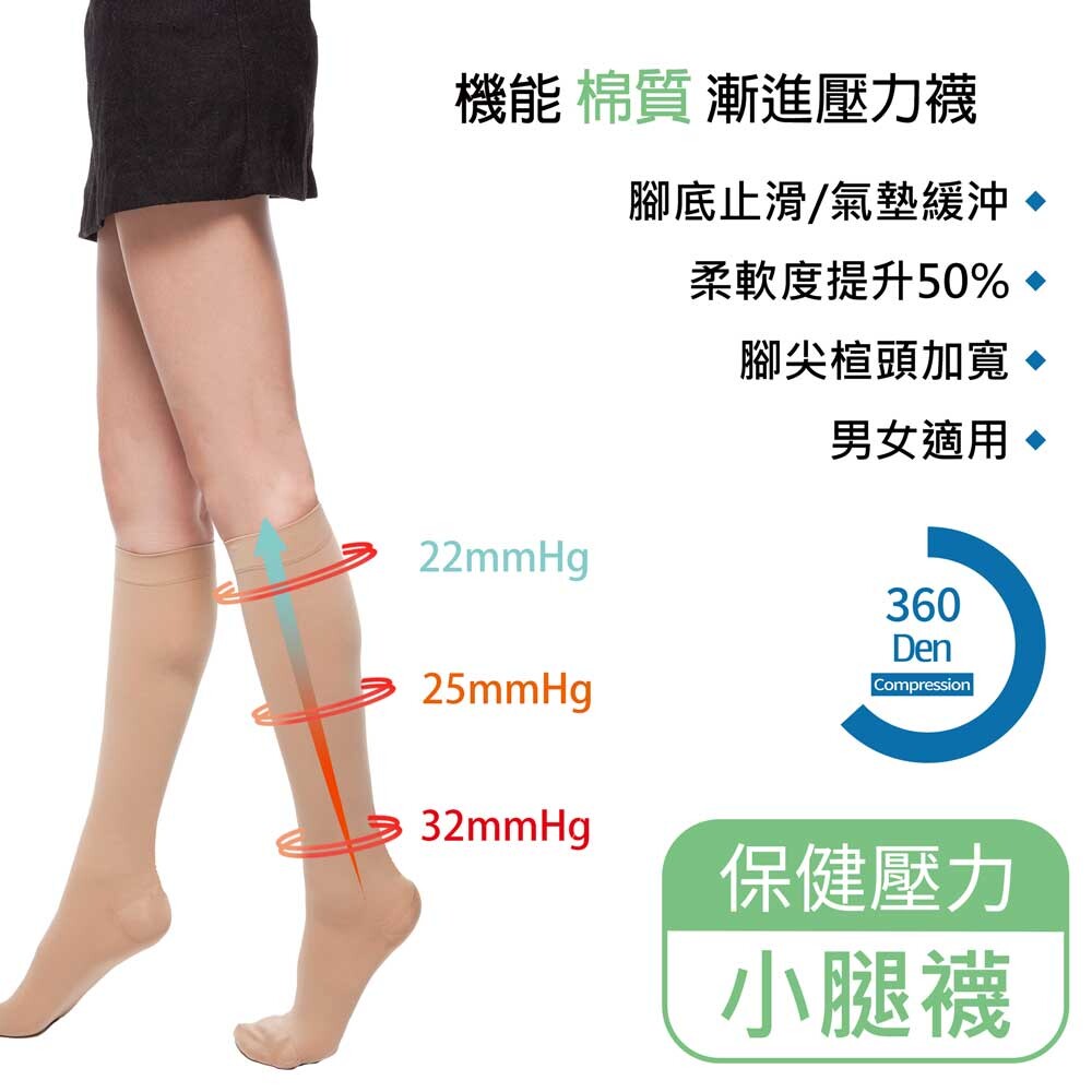 優惠方案方案1 1入 售價$400 均價$400 方案2 5入 售價$1550 均價$310 商品介紹壓力值:22-32mmHg,漸進壓力。