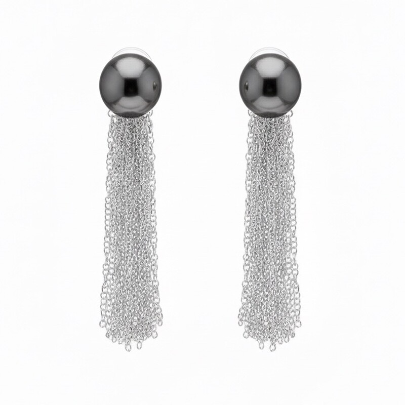 灰黑珍珠 長款流蘇後勾耳釘 獨特唯一