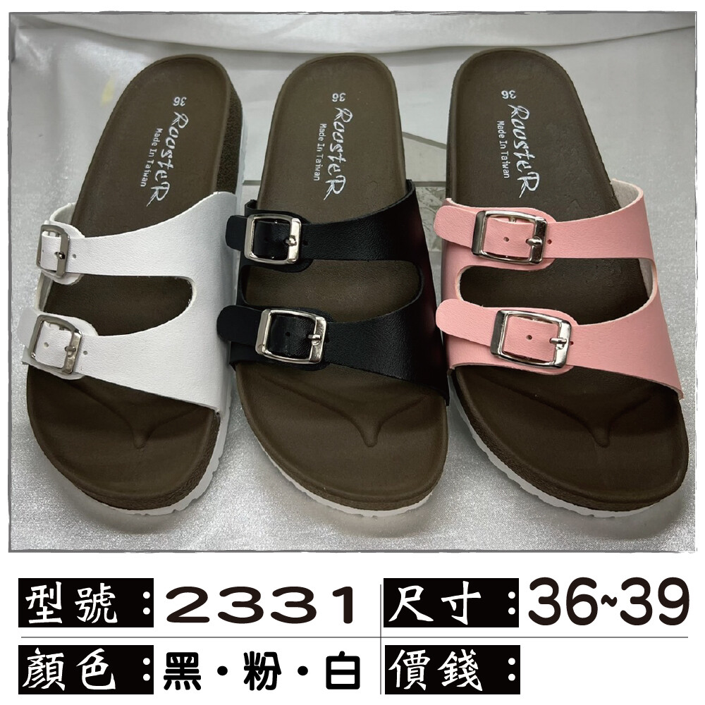 ROOSTER公雞 基本款細帶二條式扣帶休閒拖鞋精緻手工鞋拖鞋女生拖鞋 A2331