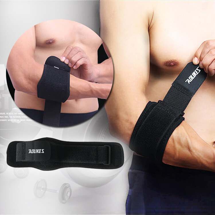 使用方法:先將護肘固定於手臂之上,收緊綁帶直接穿過環扣調節鬆緊,貼合黏扣準備去運動