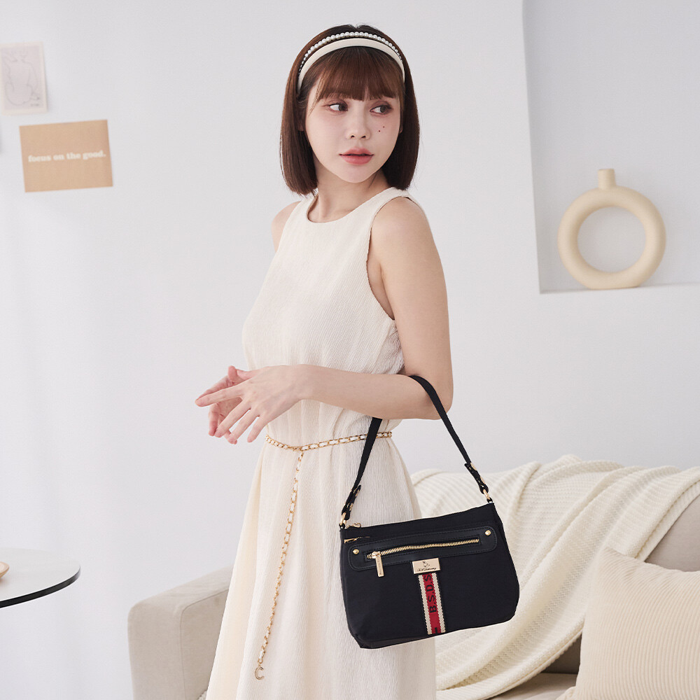 B.S.D.S冰山袋鼠 - 非常莓好 - 織帶拼接實搭斜肩包 - 紅磚黑【8022-KR】