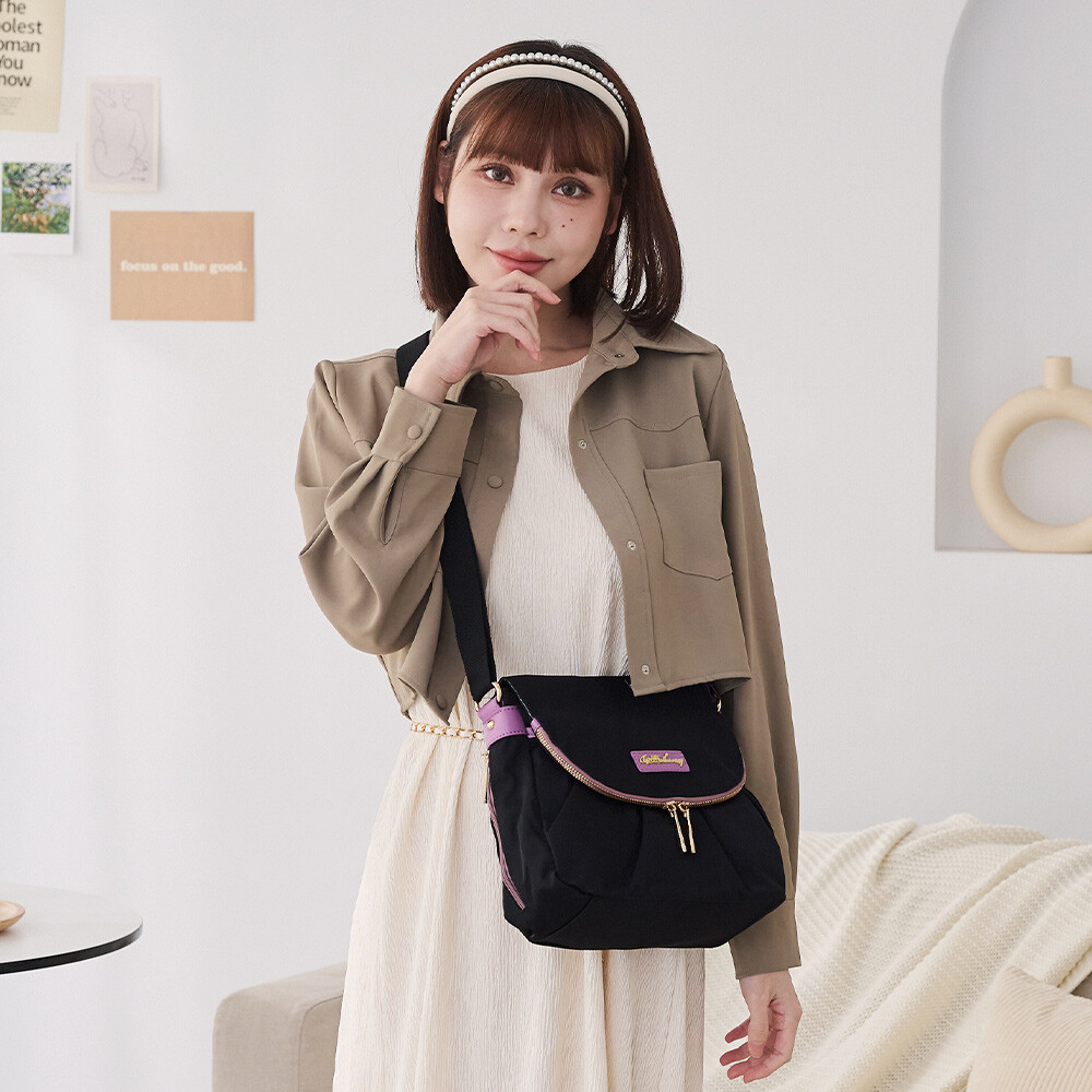 B.S.D.S冰山袋鼠 - BLACK魅惑 - 典雅拼接掀蓋式斜背包 - 芋紫黑【U087-KU】