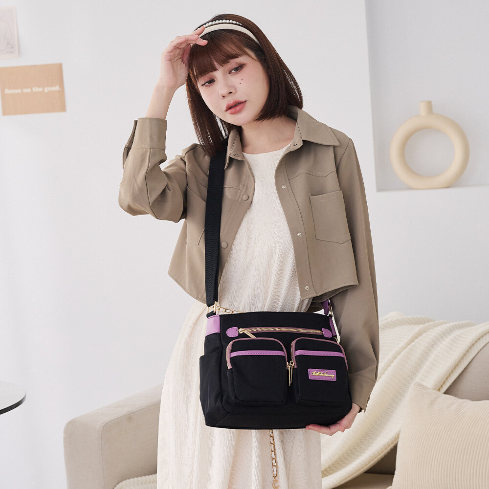 B.S.D.S冰山袋鼠 - BLACK魅惑 - 典雅拼接多口袋斜背包 - 芋紫黑【U089-KU】