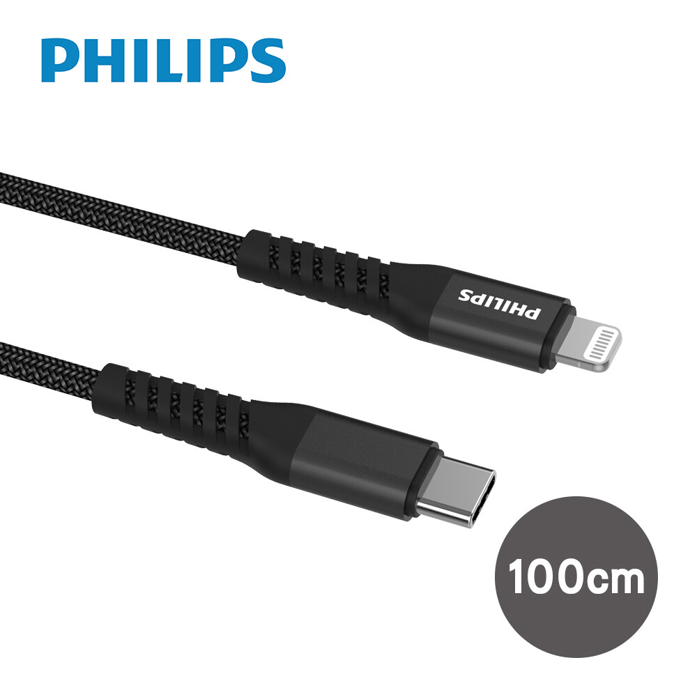 【PHILIPS 飛利浦】USB-C to Lightning手機充電線 黑1m(DLC4551V)