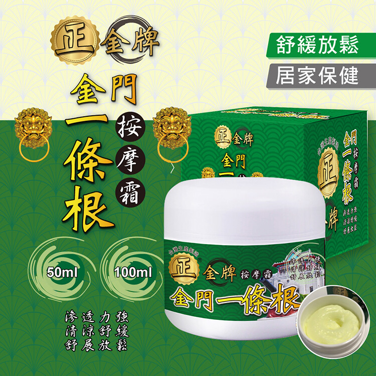 方案1 1入 售價$249 均價$249 方案2 3入 售價$629 均價$210 方案3 6入 售價$1194 均價$199 方案4 10入 售價$1950 均價$195 方案5 12入 售價$2328 均價$194 商品介紹【正金牌】金門一條根按摩霜