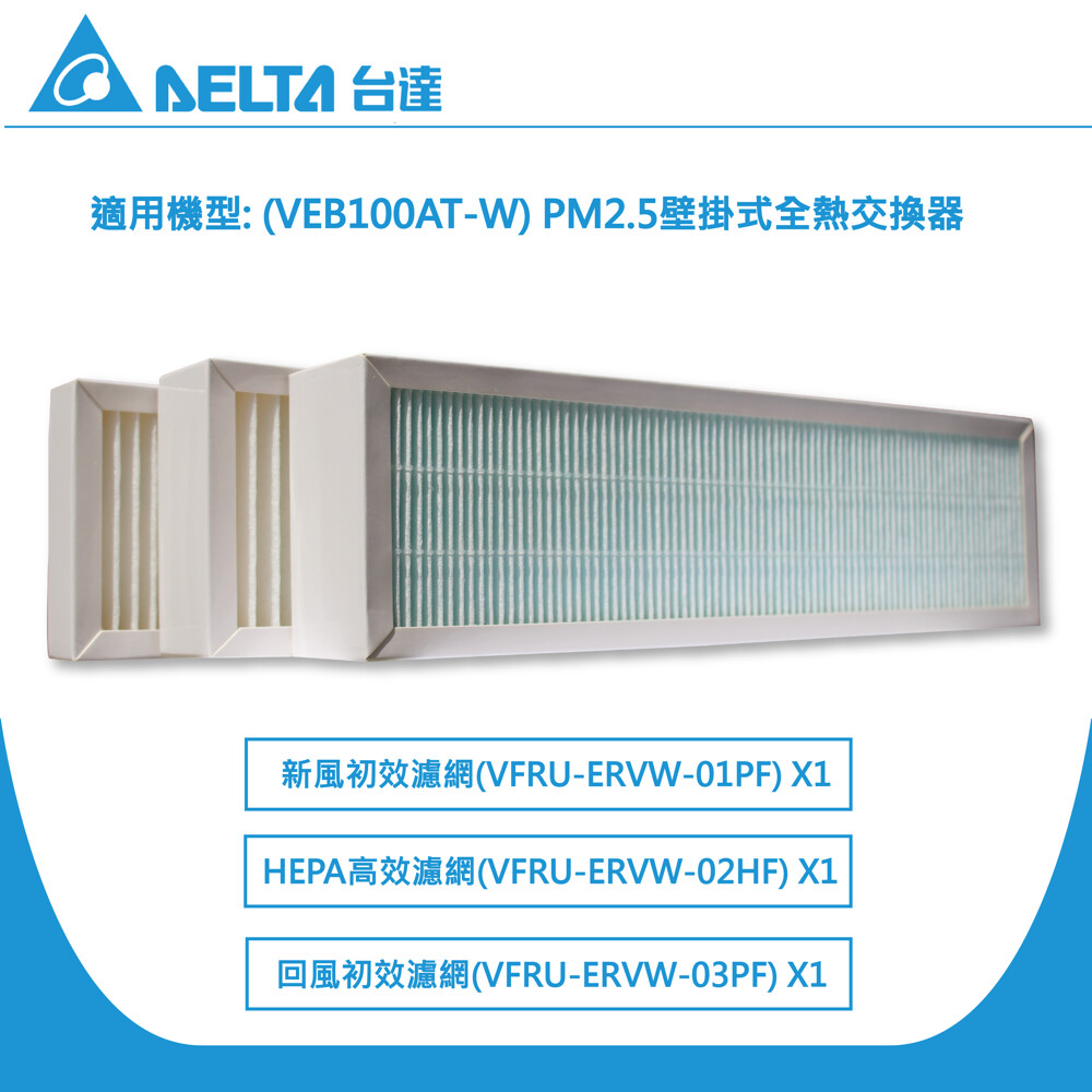 【台達電子】PM2.5壁掛式全熱交換器 濾網3片一組 機型: VEB100AT-W