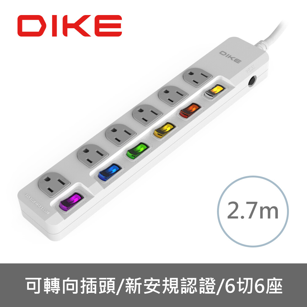 DIKE DAH669T 可轉向插頭 六切六座 電源延長線 延長線 台灣製可壁掛 2.7M/9尺