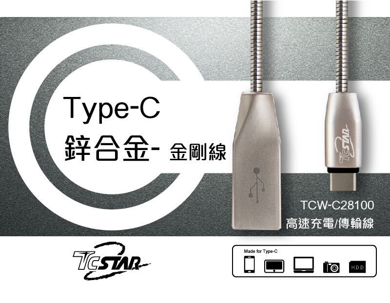 TCSTAR TCW-C28100 Type-c 鋅合金高速傳輸充電線1M 充電線 傳輸充電線 傳輸