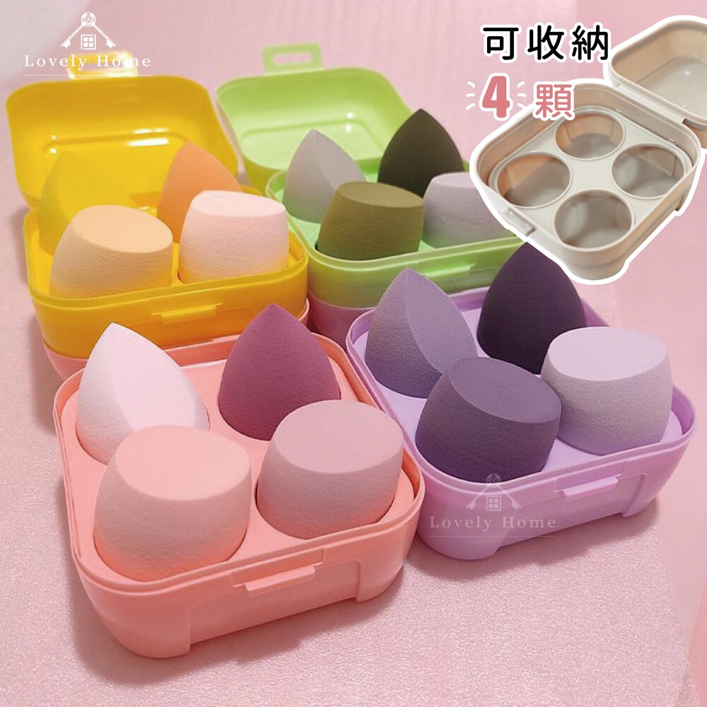 (台中 可愛小舖)美妝蛋盒 美妝蛋 盒 蛋形 海綿盒 收納盒 密封盒 隔離細菌 化妝 盒 雞蛋盒四格
