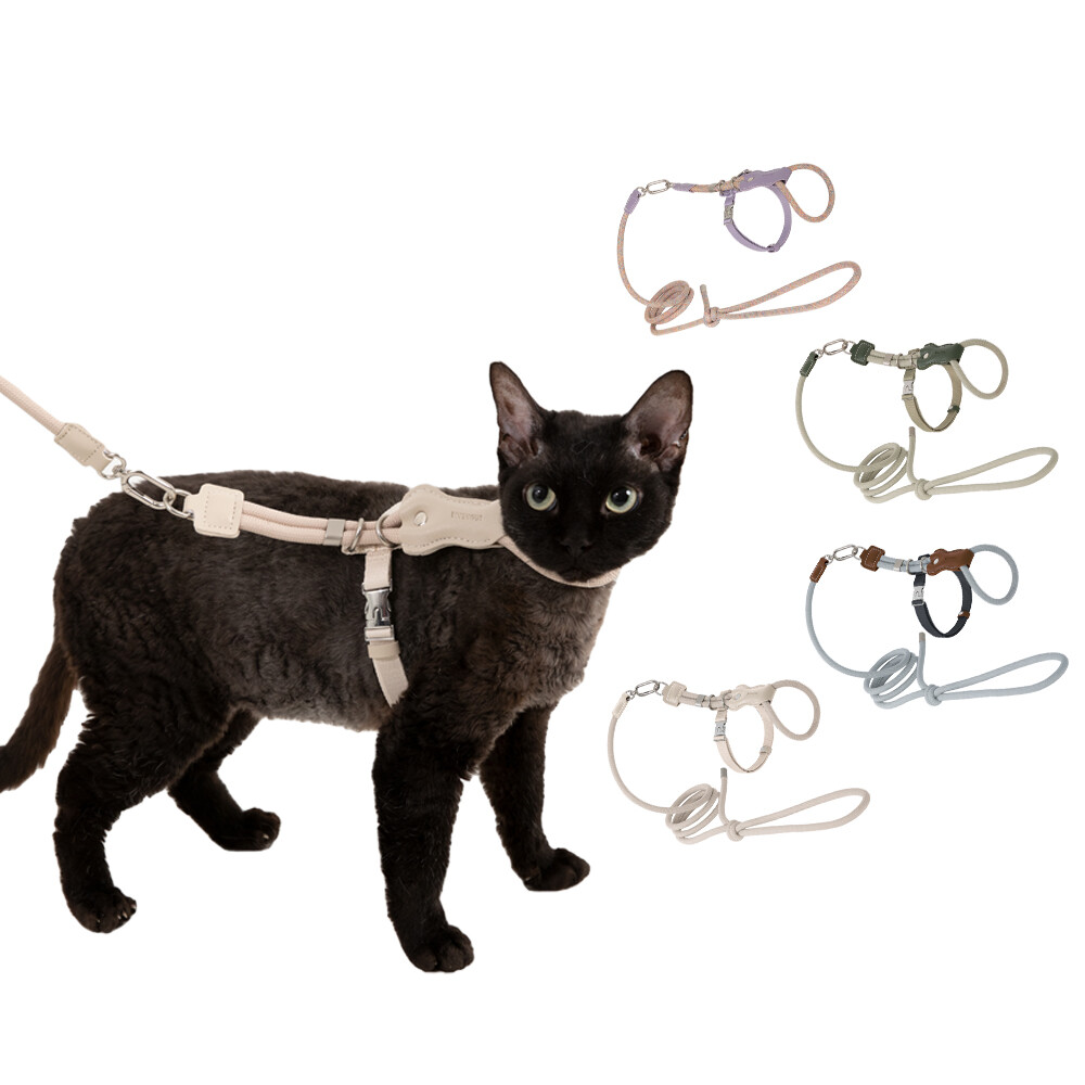品名 : 山谷(圓繩)皮革貓貓胸背牽繩組