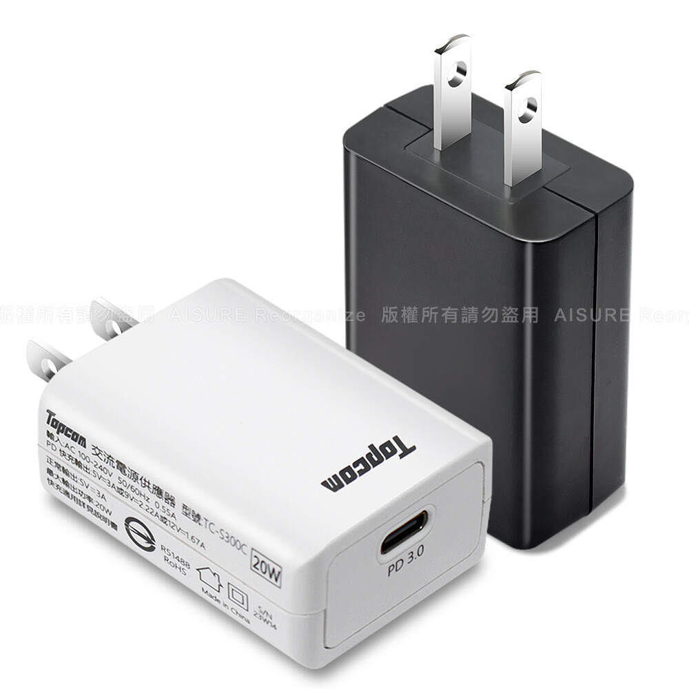 Topcom 20W Type-C PD3.0+QC3.0 快速充電器TC-S300C-2入