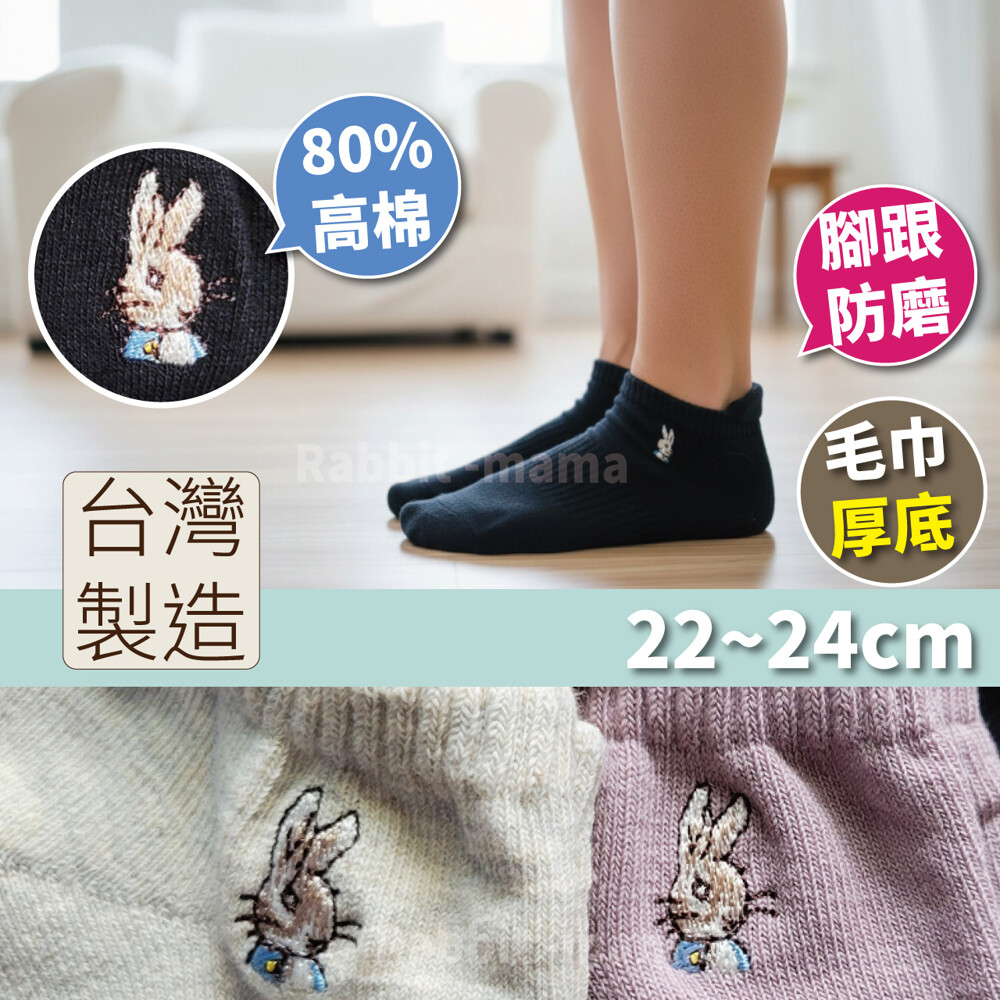 台灣製 彼得兔毛巾厚底襪 9213 比得兔氣墊襪 船型襪 短襪 兔子媽媽