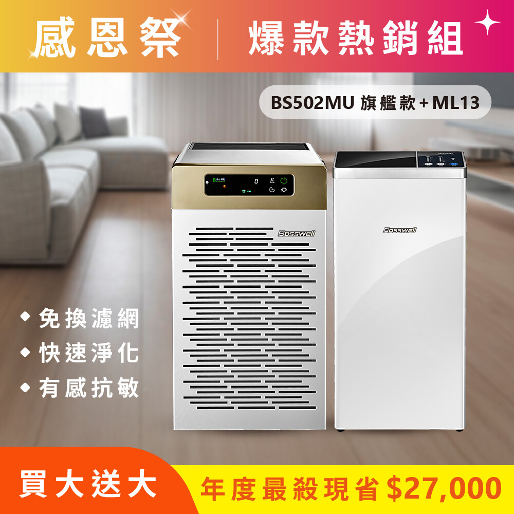 【Bosswell 博士韋爾】AI智能滅菌零耗材空氣清淨機 旗艦款8-30坪 紫外線殺菌 無耗材