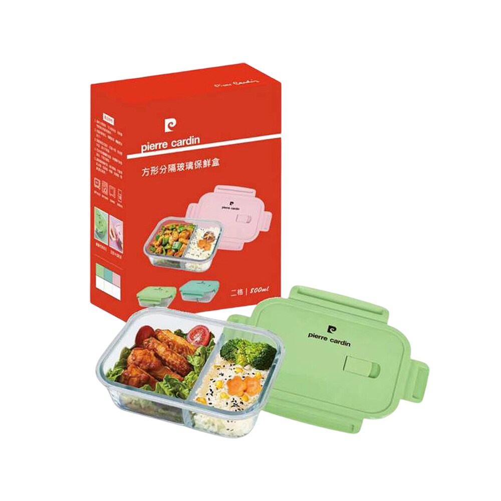 免運 皮爾卡登 方形分隔玻璃保鮮盒1000ml(顏色隨機) PCJR-119 超值2入