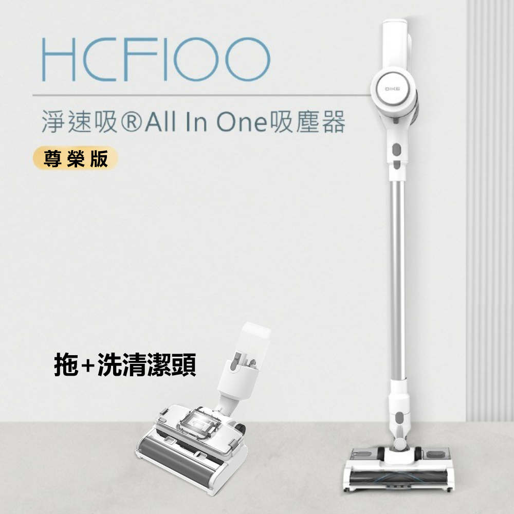 【DIKE】All In One 淨速吸系列乾溼拖無線吸塵器 旗艦版(塵螨+洗地)HCF110WT