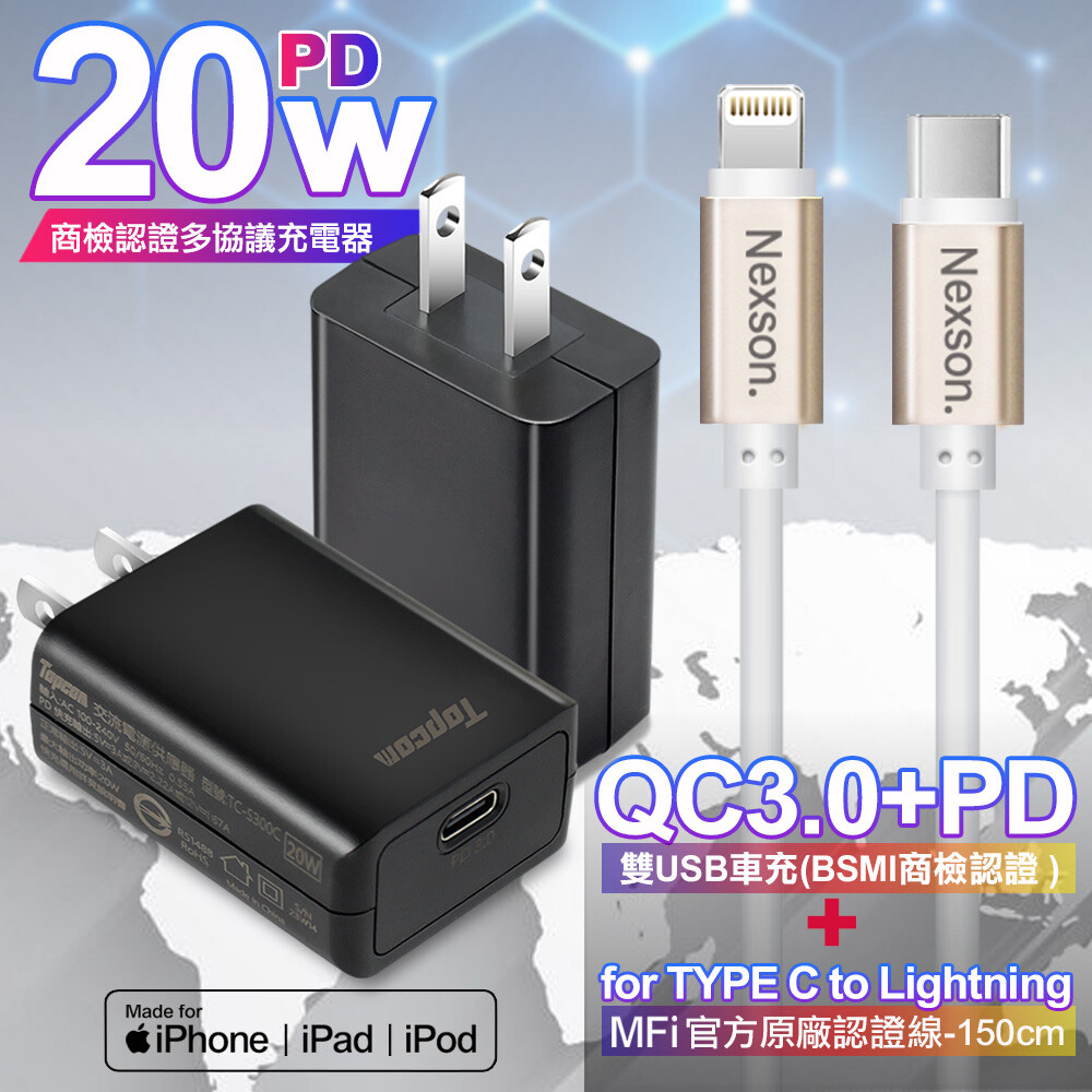 Topcom TC-S300C PD20W黑+NEXSON 蘋果認證 C to L-金色