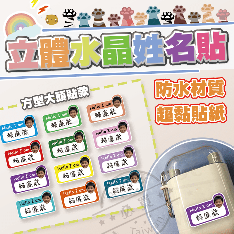 🇹🇼製造🎊新款 水晶姓名貼 大姓名款 大頭貼 水晶貼 姓名貼 防水姓名貼 幼兒園姓名貼 防水