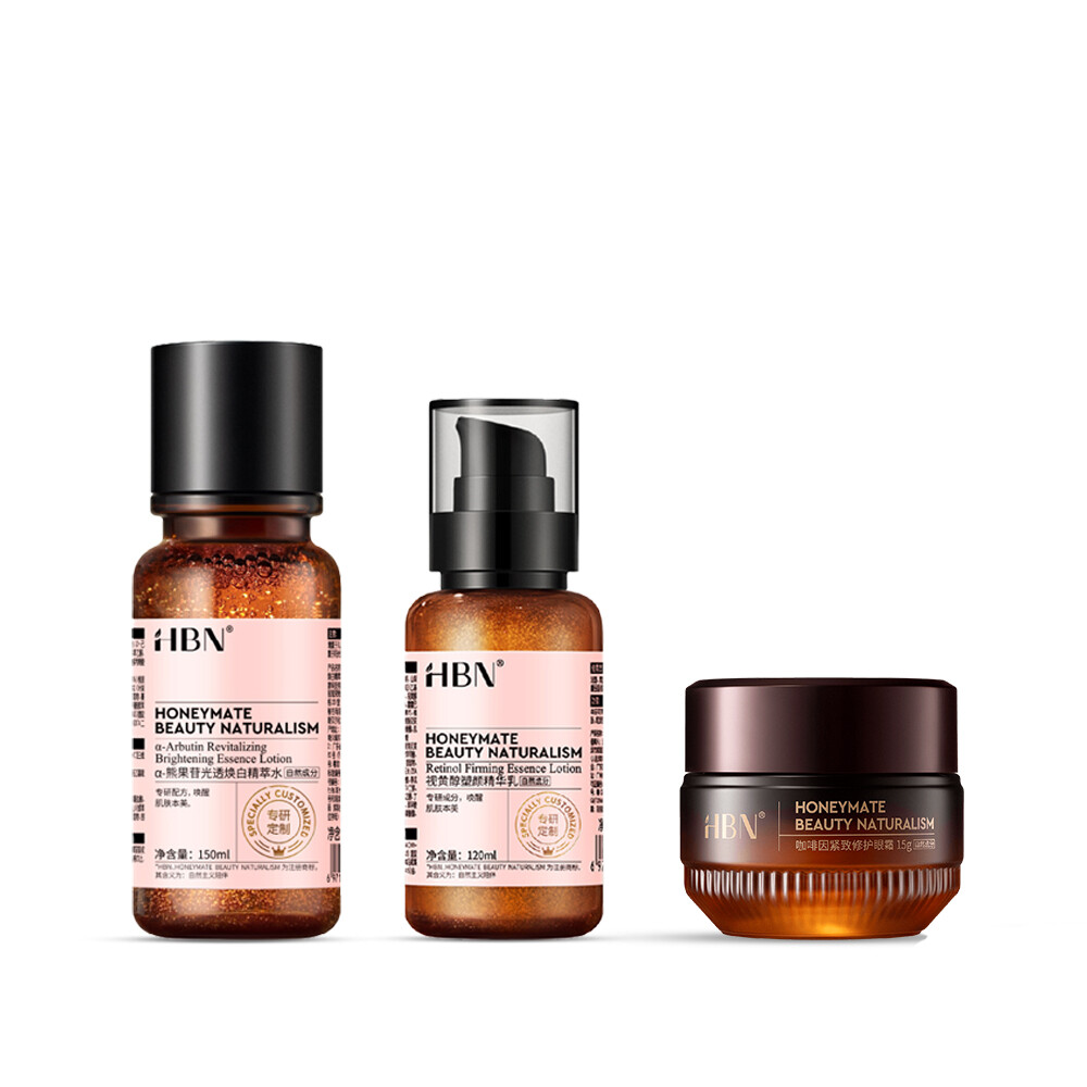 【HBN官方】早C晚A水乳咖啡因眼霜組(特證版發光水+雙A乳+眼霜)