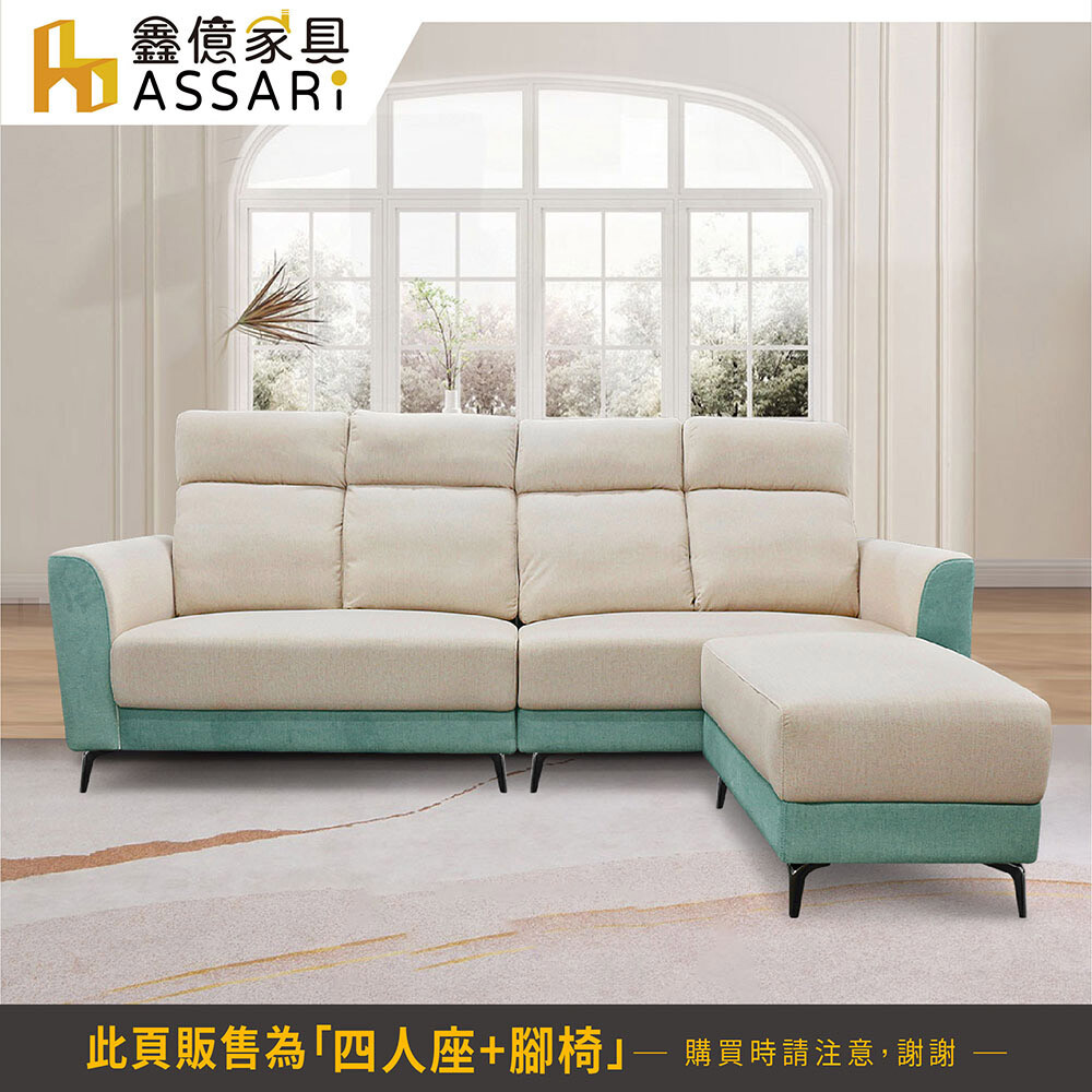 ASSARI-亨利輕柔貓抓布L型沙發(四人座+腳椅)