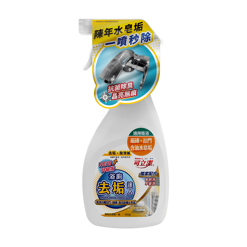 針對浴室磁磚黏膩滑垢及乾濕分離玻璃水漬皂垢量身打造!