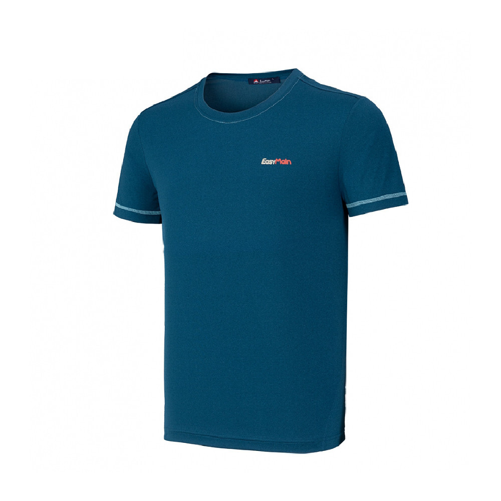 EasyMain 衣力美 男 超輕防曬棉感排汗短袖T恤《深寶藍》TE25013/機能上衣/快乾休閒服