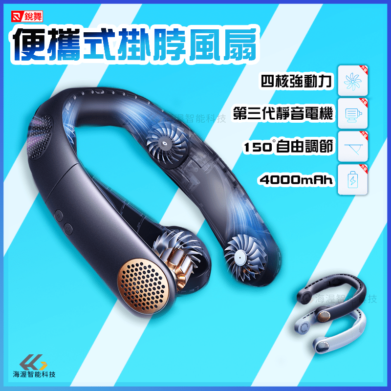 銳舞 新一代 L12 掛脖風扇,四核電機驅動,電池容量4000mAh ,雙倍續航,讓您有個涼爽的夏天