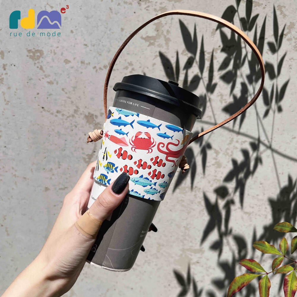 這款免縫真皮杯套,採用質感真皮製作,搭配可愛的海洋生物插畫圖案,從熱情的小丑魚到俏皮的螃蟹,每一口飲品都充滿夏日清爽氛圍。