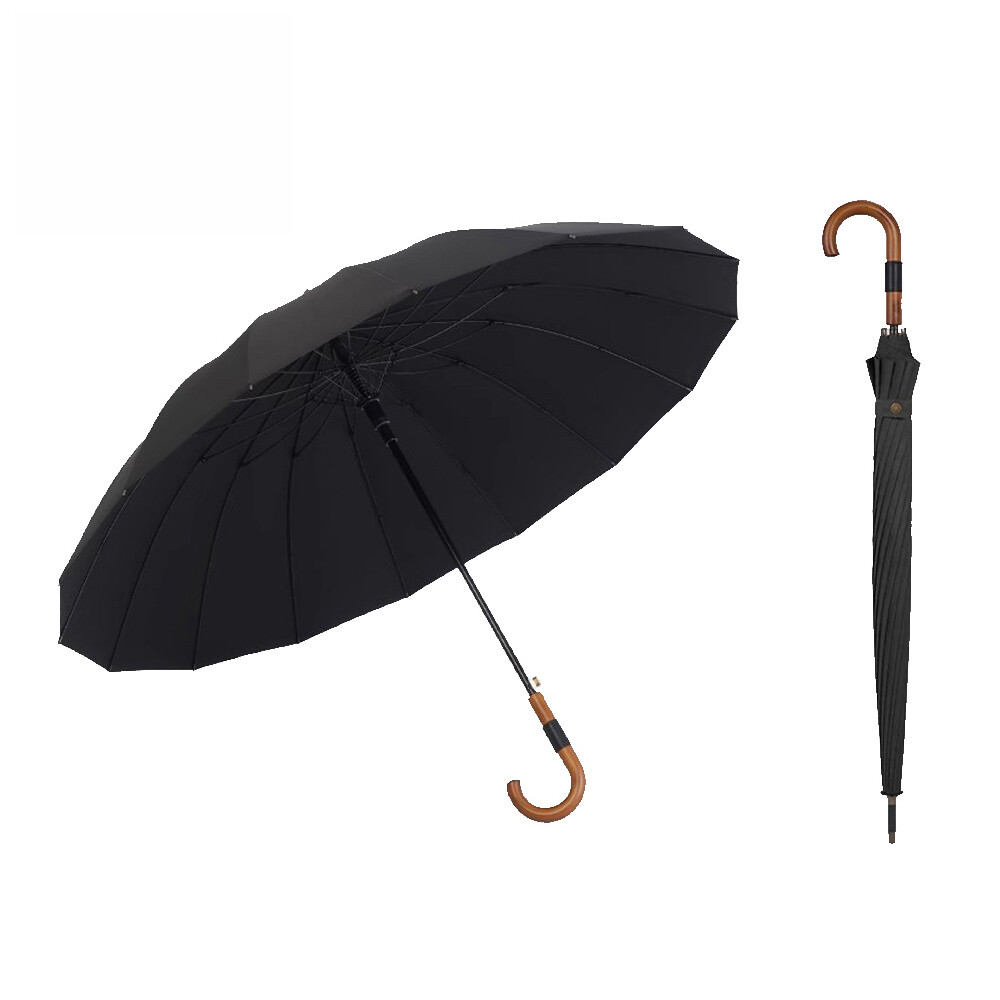 PUSH! 戶外休閒用品 自動原木彎柄16骨雨傘 復古商務傘 直杆晴雨傘長柄傘 高爾夫雨傘 I111