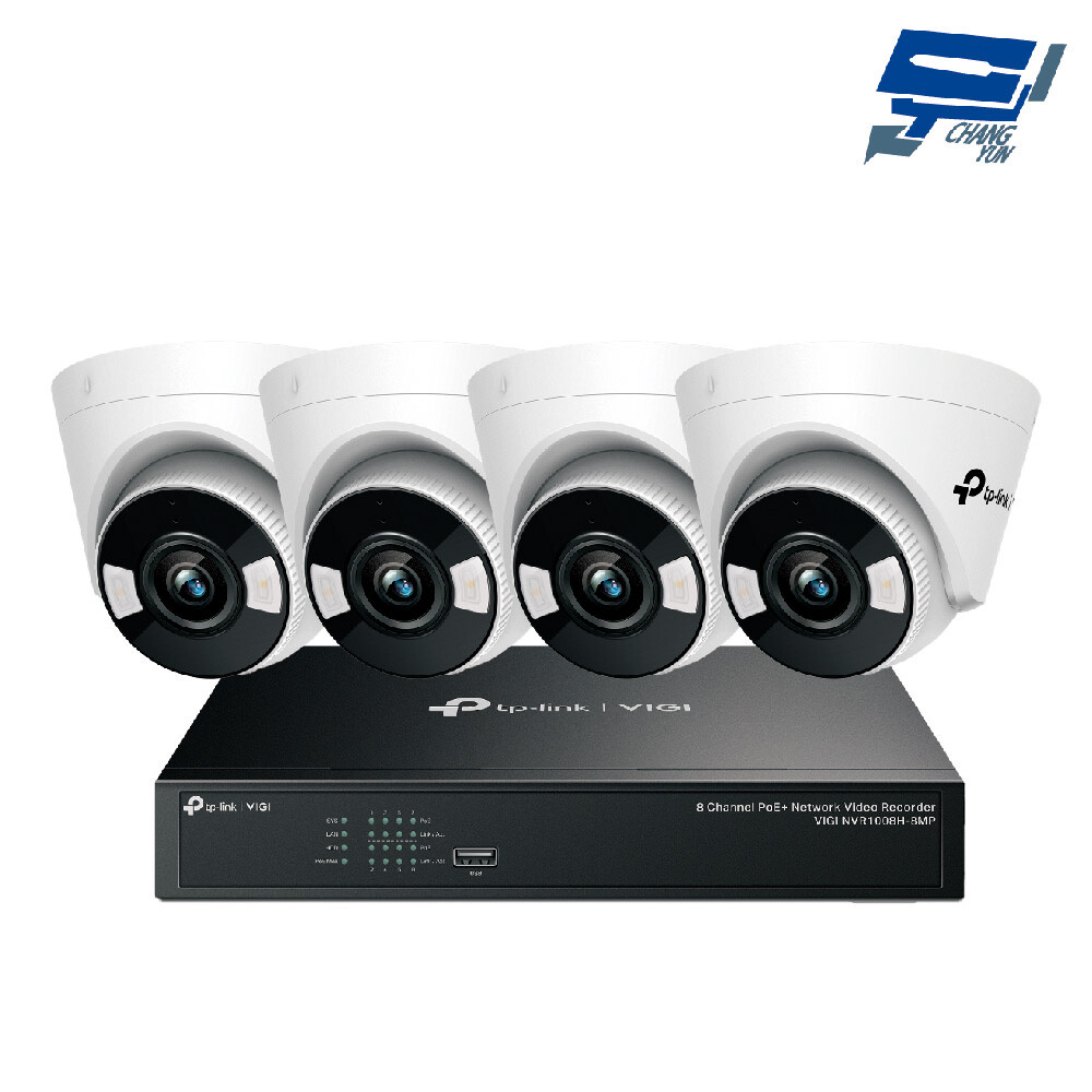 TP-LINK 昌運監視器組合 NVR1008H-8MP 8路主機+C450 全彩半球型監視器*4