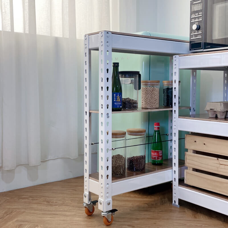 這款窄型滑輪收納櫃,利用手掌寬的小空間輕鬆打造出高效的收納系統。無論是擺放在冰箱側邊、餐櫃旁或沙發,都能完美融入,創造多一層實用收納。免螺絲角鋼結構,組裝快速無需工具;搭配滑順萬向輪,推拉順手不卡卡。層板高度可依物品尺寸自由調整,瓶罐、備品、調味料、衛生用品一櫃搞定,輕鬆實現系統化收納!