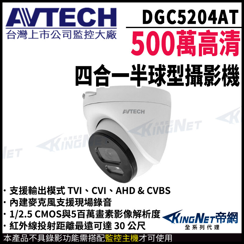 AVTECH 陞泰 帝網監視器 DGC5204AT 500萬 同軸聲音 四合一 半球紅外線攝影機