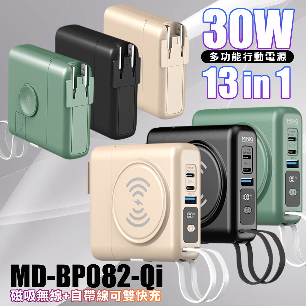 MINIQ 13合1多功能10000mah 4合1無線磁吸行動電源+充電器