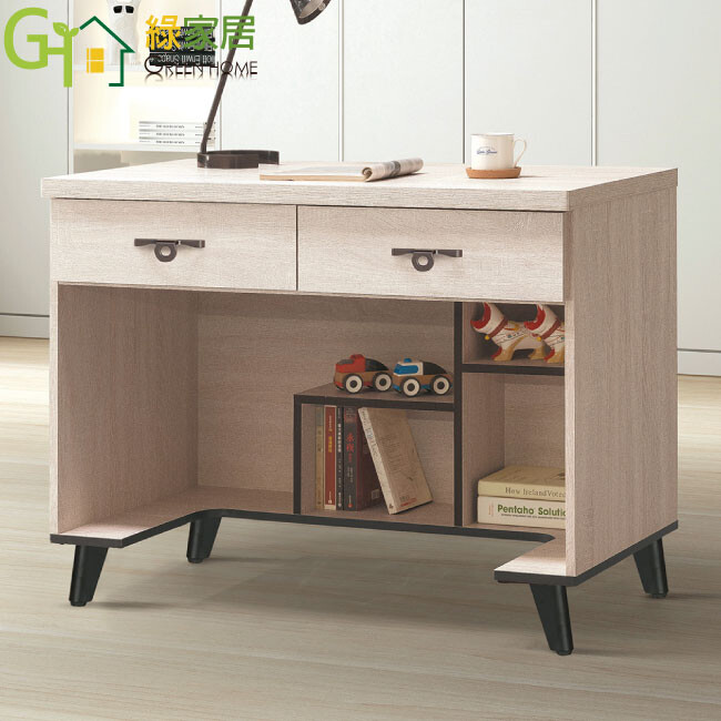 方案1 1入 售價$5603 均價$5603 商品介紹【綠家居】米砂3.5尺二抽書桌 淺橡木紋色系+安心材質製造,使用放心+搭配居家更便利,採用防蛀木心板+烤漆五金腳座+五金滑軌結構等安心材質製造 ,外層採用防潮耐磨噴漆處理搭配採用二抽屜+開放層格等收納空間設計,全由專人配送到家,專業安心服務,替你省下更多時間!