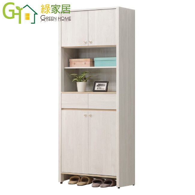 方案1 1入 售價$12496 均價$12496 商品介紹【綠家居】米樂2.6尺四門二抽高玄關鞋櫃 淺橡木紋色系+安心材質製造,使用放心+搭配居家更便利,採用防蛀木心板+防潮耐磨底座+防夾手緩衝門片五金+五金滑軌結構等安心材質製造 ,外層採用防潮耐磨噴漆處理搭配採用開門櫃+二抽屜+內&外開放層格等收納空間設計,全由專人配送到家,專業安心服務,替你省下更多時間!