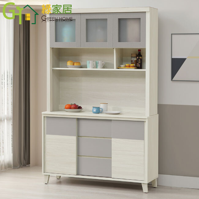 方案1 1入 售價$17324 均價$17324 商品介紹【綠家居】泰勒曼4尺開&推門三抽高餐櫃組合 木紋雙色系+安心材質製造,使用放心+搭配居家更便利,採用防蛀木心板+實木防刮腳座+五金滑軌結構+防夾手緩衝門片五金+防潮灰色面板等安心材質製造 ,外層採用防潮耐磨噴漆處理搭配採用開門櫃&推