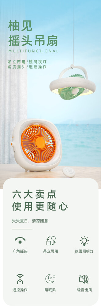 - 夏日橙-柚見搖頭吊扇(遙控版)