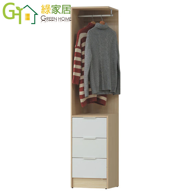 方案1 1入 售價$7538 均價$7538 商品介紹【綠家居】普伊斯1.5尺三抽側邊衣櫃(二色可選) 二色可選+安心材質製造,使用放心+搭配居家更便利,採用防蛀木心板+防潮耐磨底座+五金滑軌結構等安心材質製造 ,外層採用防潮耐磨噴漆處理搭配採用吊衣桿+三抽屜+開放層格等收納空間設計,全由專人配送到家,專業安心服務,替你省下更多時間!