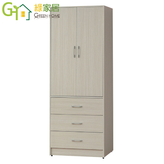 方案1 1入 售價$9821 均價$9821 商品介紹【綠家居】普伊斯2.7尺二門三抽衣櫃 白榆木紋色系+安心材質製造,使用放心+搭配居家更便利,採用防蛀木心板+防潮耐磨底座+防夾手緩衝門片五金+五金滑軌結構等安心材質製造 ,外層採用防潮耐磨噴漆處理搭配採用開門櫃+吊衣桿+三抽屜+內開放層格等收納空間設計,全由專人配送到家,專業安心服務,替你省下更多時間!