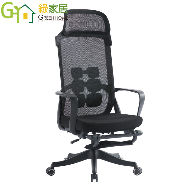 【綠家居】夏亞尼高背黑網布多功能主管椅/辦公椅(頭枕可調+可後仰&高度調整+伸縮腳靠枕)
