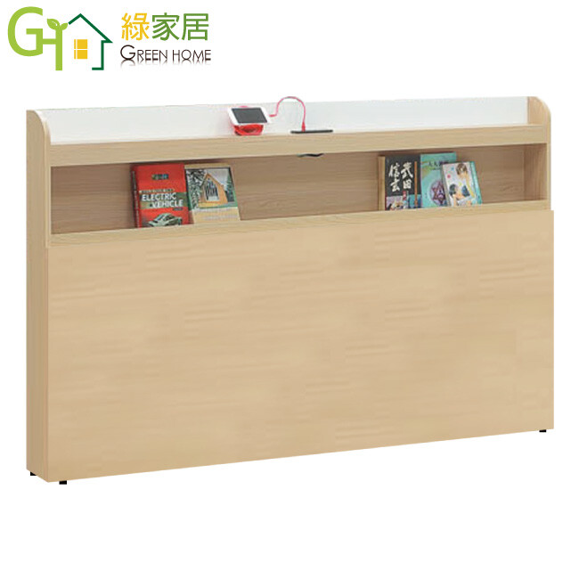 【綠家居】普伊斯5尺雙人插座可收納床頭片(二色可選)