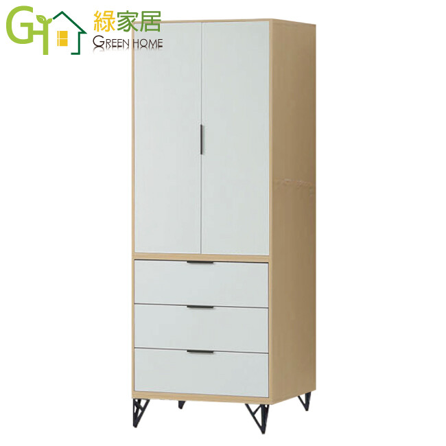 方案1 1入 售價$9821 均價$9821 商品介紹【綠家居】普伊斯2.7尺二門三抽鐵腳衣櫃 木紋雙色系+安心材質製造,使用放心+搭配居家更便利,採用防蛀木心板+五金滑軌結構+烤漆五金腳座+防夾手緩衝五金等安心材質製造 ,外層採用防潮耐磨噴漆處理搭配採用開門櫃+吊衣桿+三抽屜+內開放層格等收納空間設計,全由專人配送到家,專業安心服務,替你省下更多時間!