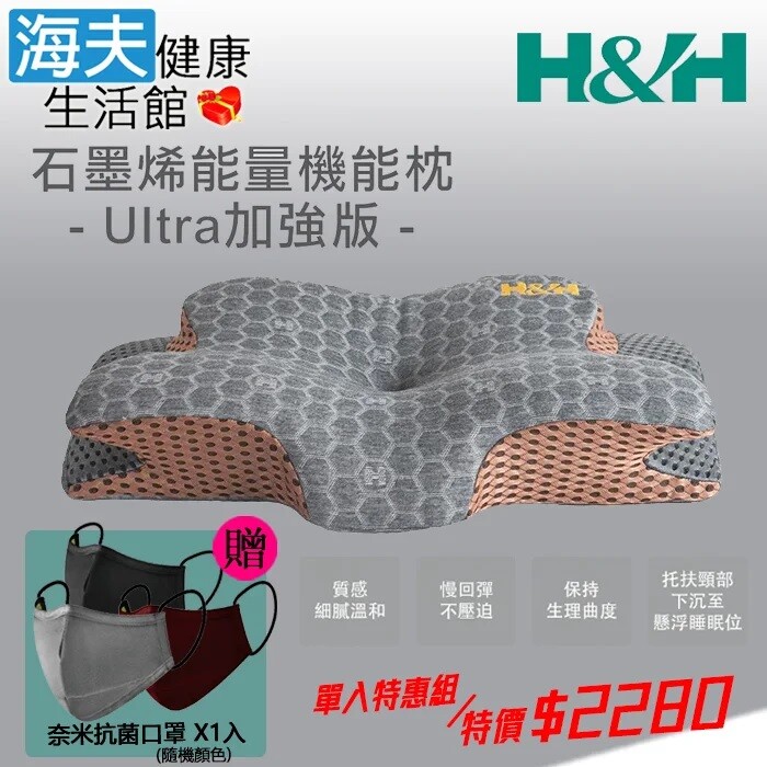 【海夫健康生活館】限時特賣 南良H&H 石墨烯能量機能枕-Ultra加強版(加贈奈米鋅抗菌口罩)