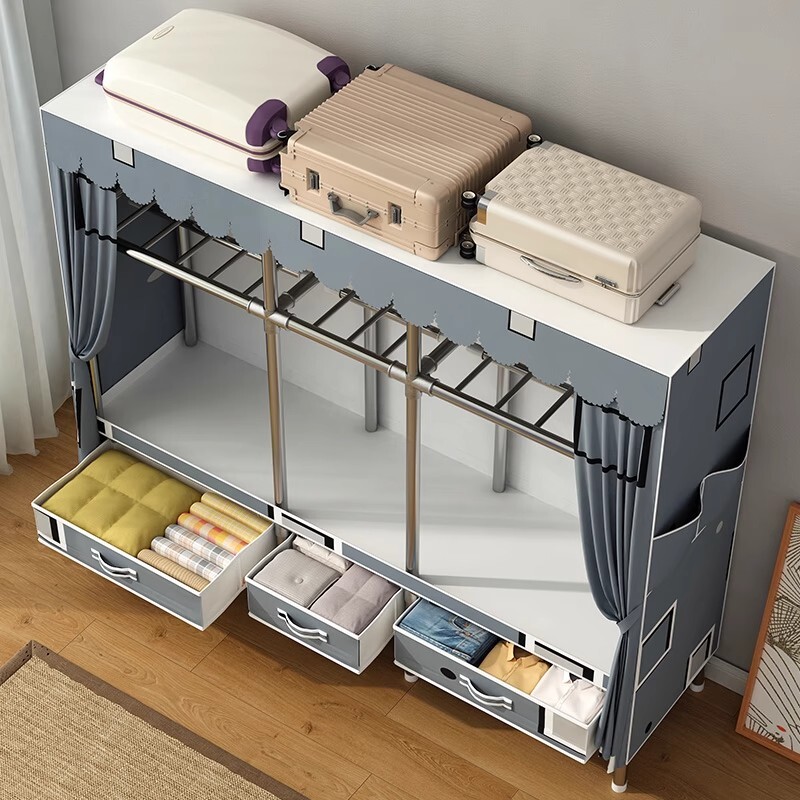 衣櫃 簡易組裝 臥室家用 出租房用 布衣櫃帶抽屜 全鋼架結構 結實耐用衣櫥 置物架