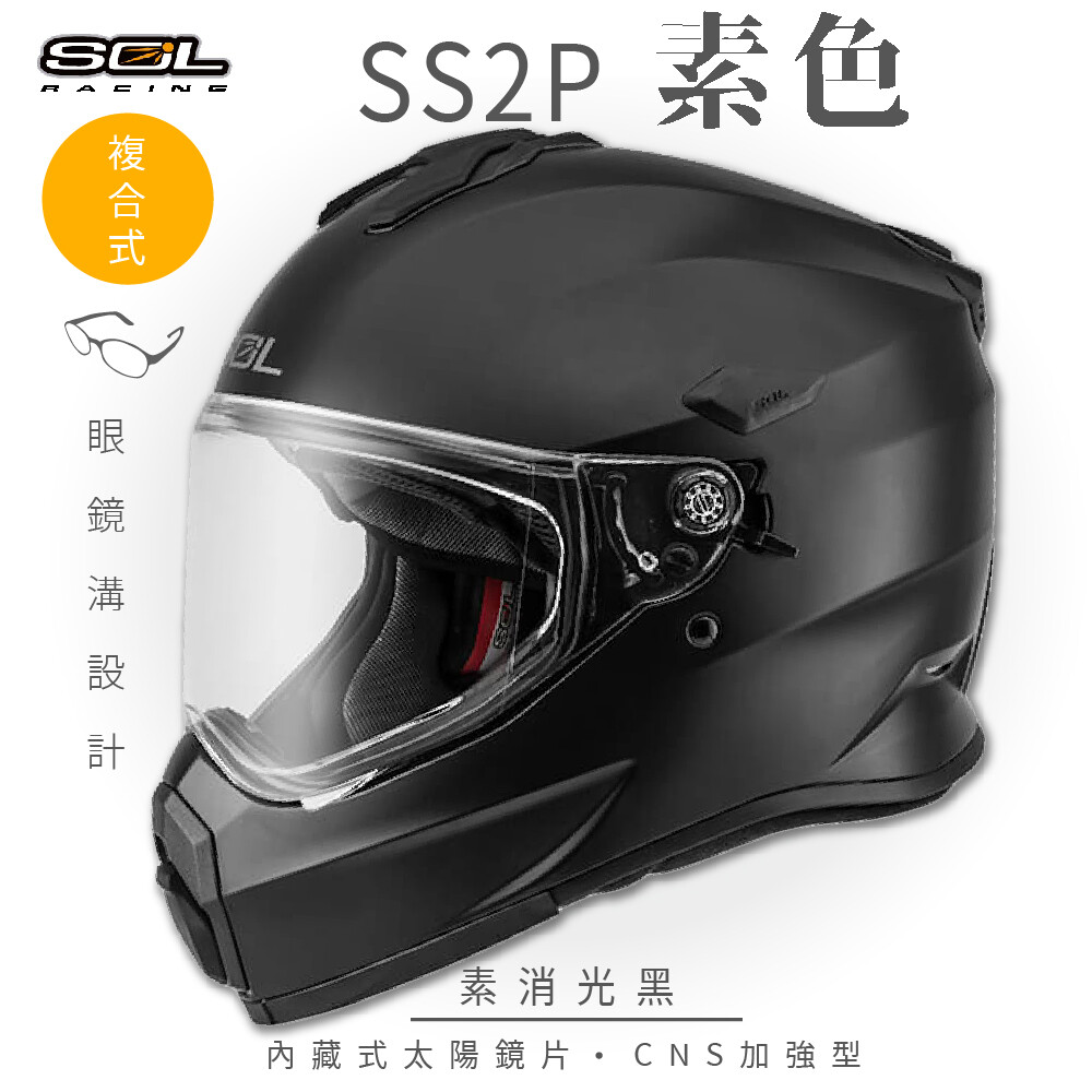 【SOL SS-2P 素色 複合式安全帽】全罩│越野帽│加強型眼鏡溝│內藏墨鏡