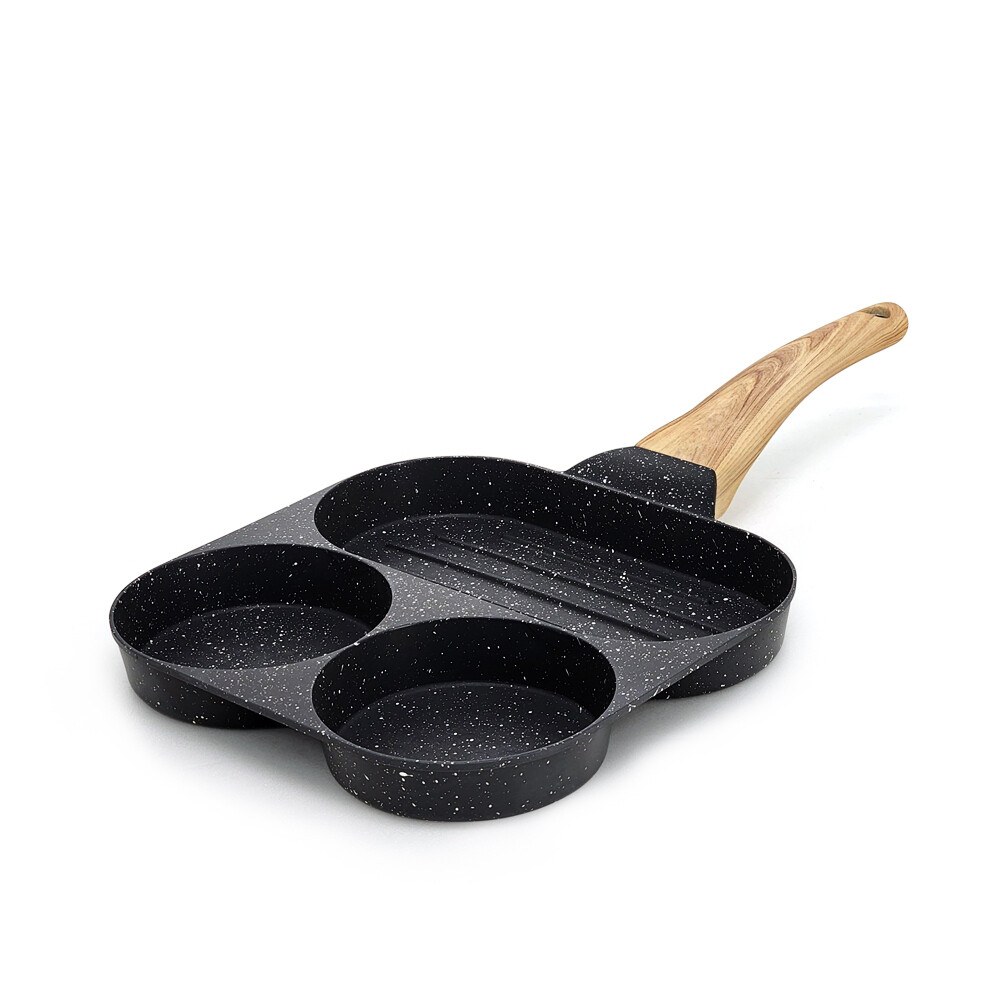 免運 【半藏】雪藏系列-IH鈦晶不沾木紋柄三格方形平煎鍋19cm