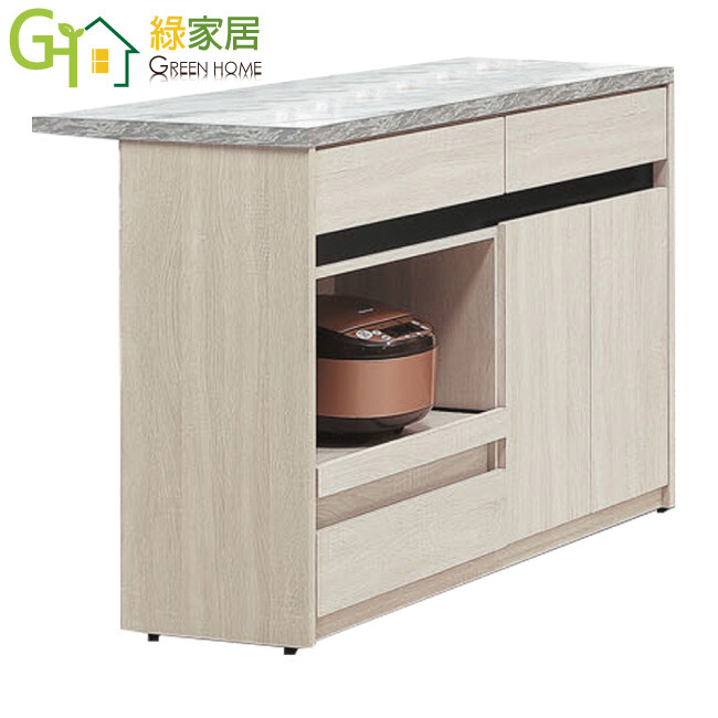 方案1 1入 售價$12103 均價$12103 商品介紹【綠家居】達斯4尺二門三抽拉盤中島桌櫃 木紋雙色系+現代簡約風格+安心材質製造,使用放心+搭配居家更便利,整體採用防蛀木心板+防潮耐磨腳座+防夾手緩衝五金+五金滑軌結構+耐磨美耐皿仿大理石紋桌面板等材質製造搭配外層採用優莉坦耐磨全包式噴漆處理 ,採用開門櫃+拉盤層架+三抽屜+內&外開放層格等收納空間設計,全由專人配送到家,專業安心服務,替你省下更多時間!