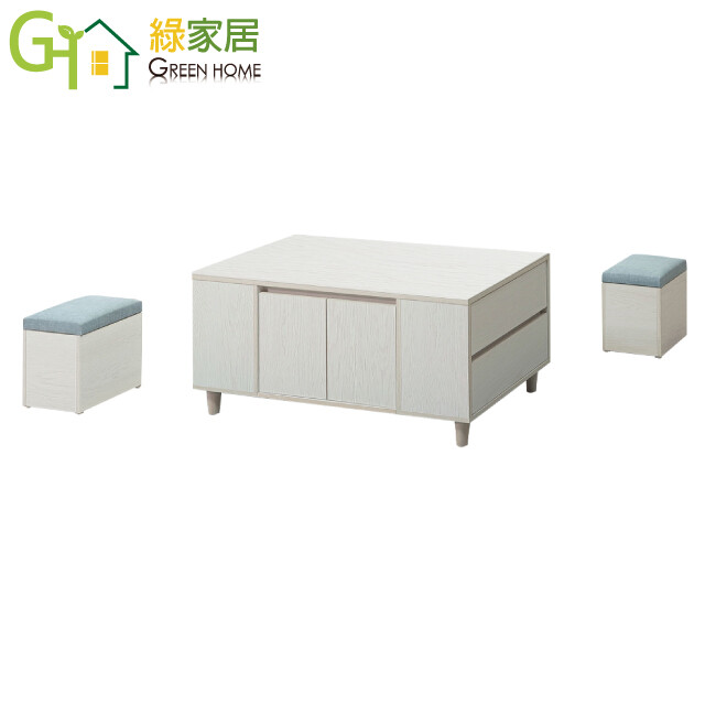 【綠家居】盧班4尺二門二抽大茶几(二色可選+附收納椅凳二張)