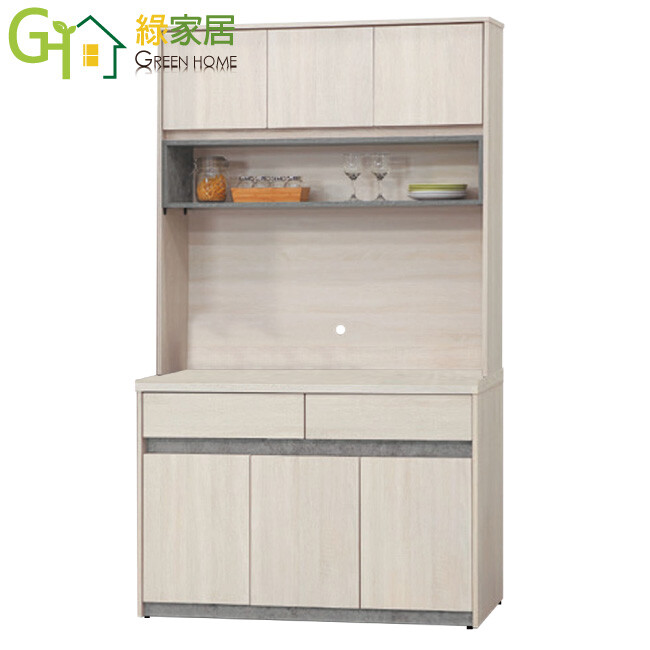 方案1 1入 售價$16495 均價$16495 商品介紹【綠家居】卡魯斯4尺六門二抽高餐櫃組合 木紋雙色系+現代簡約風格+安心材質製造,使用放心+搭配居家更便利,整體採用防蛀木心板+防潮耐磨腳座+防夾手緩衝五金+五金滑軌結構等材質製造搭配外層採用優莉坦耐磨全包式噴漆處理 ,採用開門櫃+二抽屜+內開放層格等收納空間設計,全由專人配送到家,專業安心服務,替你省下更多時間!
