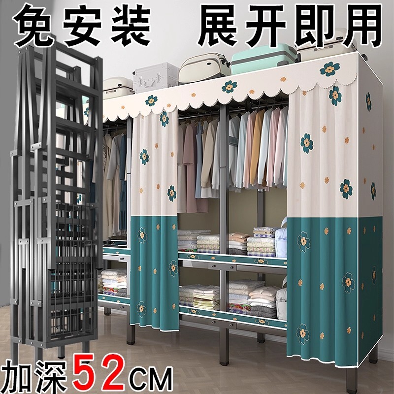 布衣櫃 簡易臥室 家用免安裝 出租房用 全鋼架 加粗加厚結實耐用 折疊衣櫥 置物架