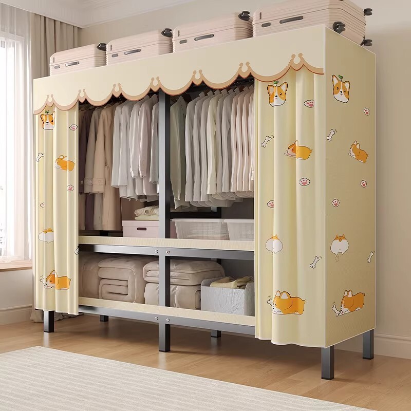 折疊免安裝衣櫃 臥室家用 簡易組裝布衣櫃 出租房用 全鋼架加厚 結實耐用 置物架